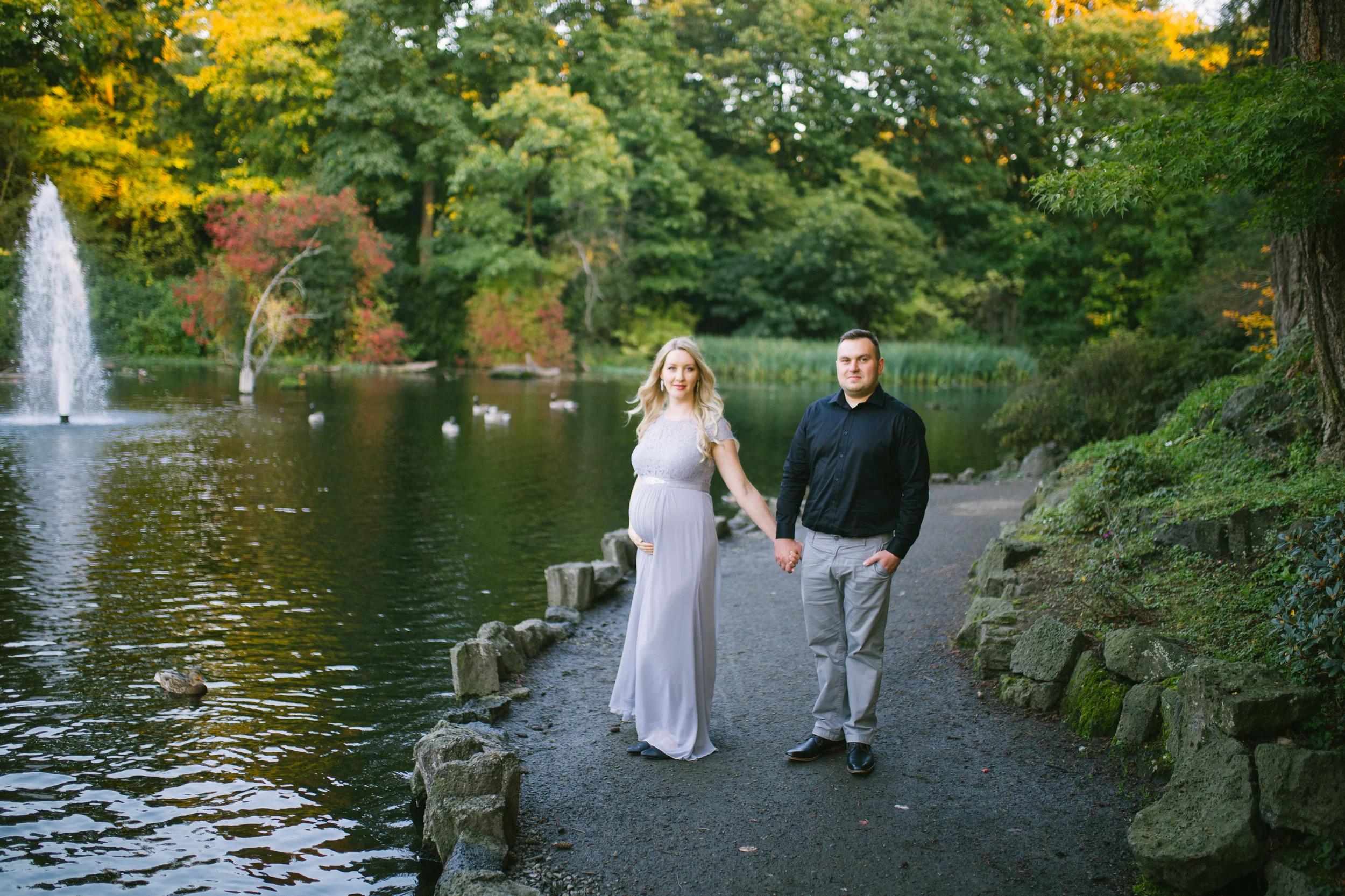 The Crystal Springs Rhododendron Garden is such a stunning backdrop for a colorful fall maternity session. Alex and Vika are expecting their first child- a baby girl! She is going to be so beautiful! This was my first time shooting at The Crystal Springs Rhododendron Garden. I always love shooting in new places, and having new locations to explore. The day I shot this maternity session was a gorgeous day in Portland. We could not have asked for anything more!
